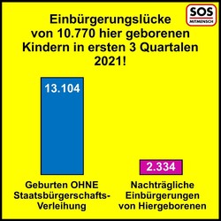 Einbürgerungs-Lücke bei Hiergeborenen wächst weiter dramatisch