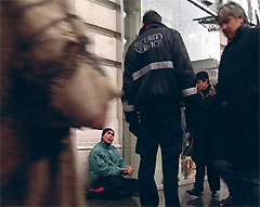 Andrej Olah* kommt ebenfalls aus dem slowakischen Dorf. Mit ihm und seinem 18jährigen Sohn war ich eine ganze Woche lang unterwegs. Meist bettelten sie in Meidling, manchmal aber auch auf der Kärntnerstraße, wo dann einer der beiden Schmiere stand, denn wenn mensch im ersten Bezirk beim Betteln erwischt wird, heißt das nicht nur erniedrigende Polizeikontrollen inklusive Leibesvisitation, sondern auch Verlust des erbettelten Geldes. Denn das Geld, das ein/e BettlerIn bei sich hat, kann von der Polizei abgenommen und als „verfallen“ erklärt werden und muss nicht zum Strafausmaß für unerlaubte Bettelei angerechnet werden – belehrte mich die Pressestelle der Bundespolizeidirektion. Früher betrug das Strafausmaß 70 Euro, mittlerweile kann sich das schon auf bis zu 700 Euro erstrecken.